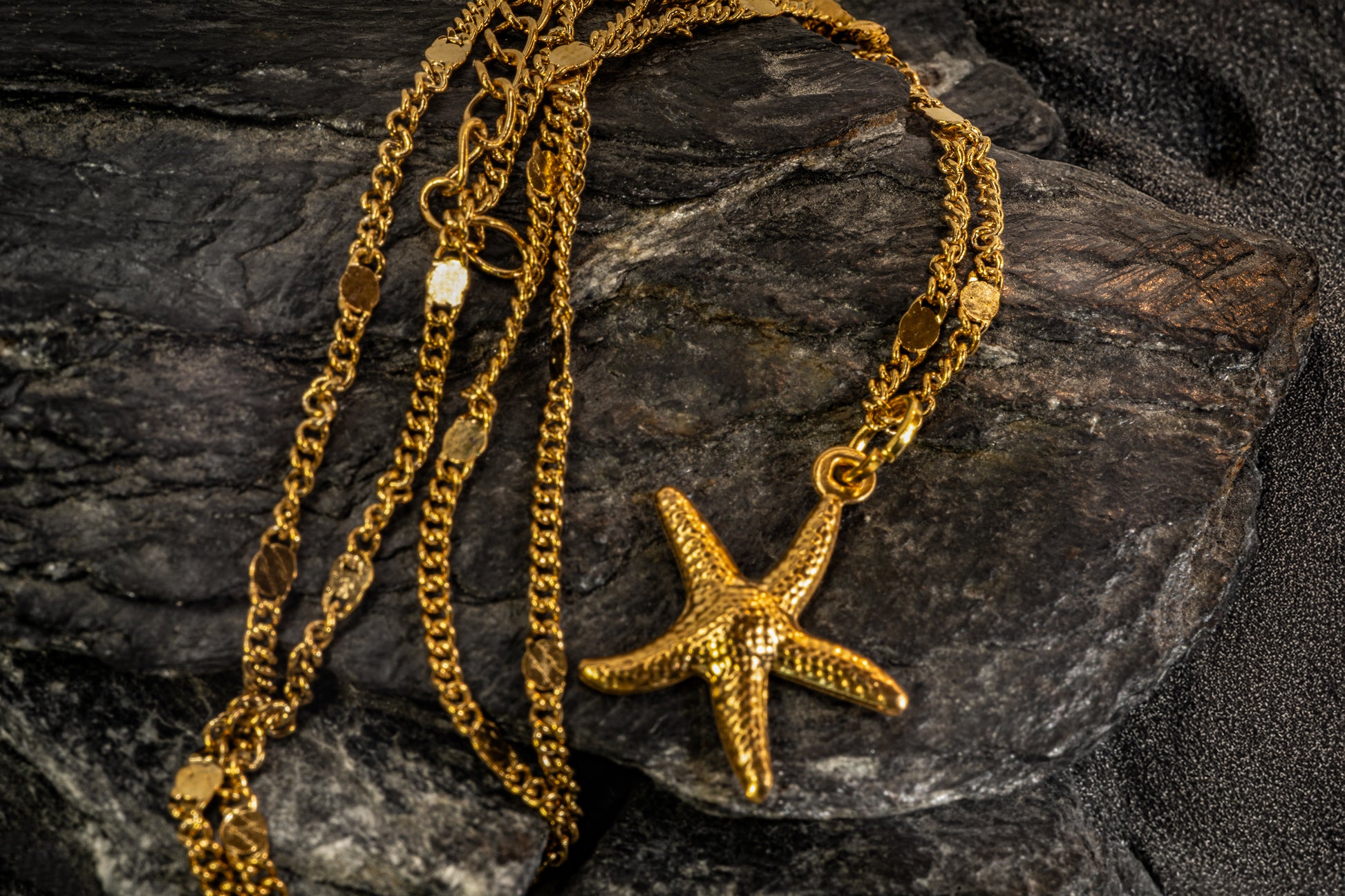 Goldene Seestern-Halskette – Sommerlicher Glanz im Sequin-Stil